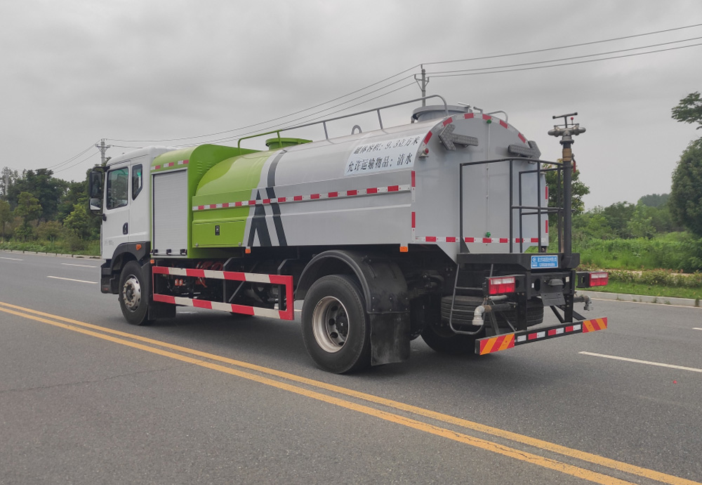 四、其他說明: 東風多利卡純電動灑水車是在東風EQ1181DACEV1二類底盤的基礎上,加裝低壓沖洗、灑水系統,由機械、液壓(氣路)、電器三部分合為一體的專用灑水作業車。采用自吸式雙級離心泵,效率高、灑水寬度大、水槍射程遠,低壓水泵由底盤變速器取力器通過傳動軸直接傳動。