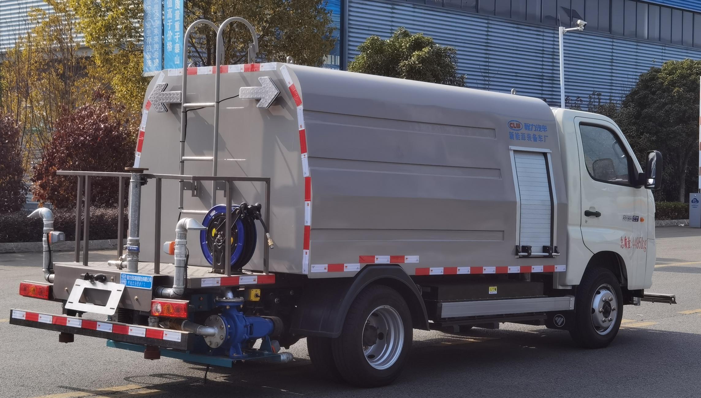 一、底盤配置: 采用福田祥菱BJ1042EVJA2車身,配置玉柴FTTBP075B發動機90/122馬力,國六排放標準,軸距2850(mm),整備質量3.2噸,額定載質量1.165噸,五擋變速箱,帶動力轉向,帶原廠空調,底盤采用東風純電動二類底盤,各總成匹配合理,完全達到國家對于新能源產品底盤的各項法規要求、 可靠性高。其具備如下特點: 動力電池布置方式采用側掛布置,采用窄托架裝配,適應各類專用上裝改裝需求; 駕駛室標配中控鎖,MP5,設置杯托、卡槽、儲物盒等 10 余處儲物空間,帶來舒適駕乘體驗; 整車輕量化設計,最大總質量為 18000kg; 搭載 210kWh 大容量動力電池,滿足各類環衛清洗車、垃圾收運車使用需求,動力電池標配水循環熱 管理系統,滿足車輛在各種環境條件下使用需求; 配備大功率上裝取電該車上藍牌,城區道路不限行。