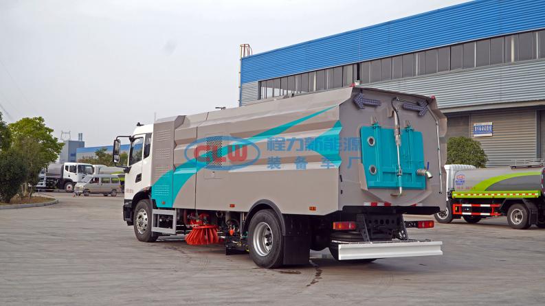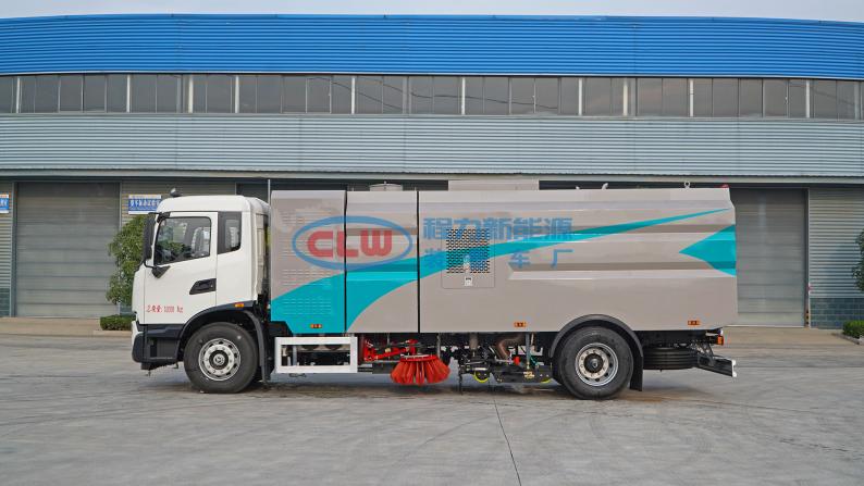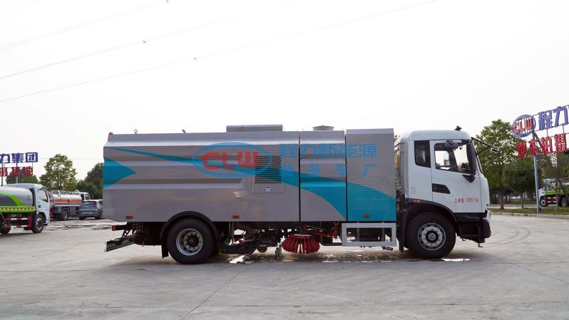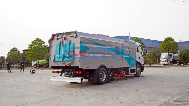 12、左右立掃為單掃盤(pán),減少了掃刷的數(shù)量和掃刷消耗量,能降低使用成本。掃刷上加裝噴水裝置,用于噴霧降塵。左右立掃分開(kāi)控制,可實(shí)現(xiàn)右掃和全掃等不同的作業(yè)模式。