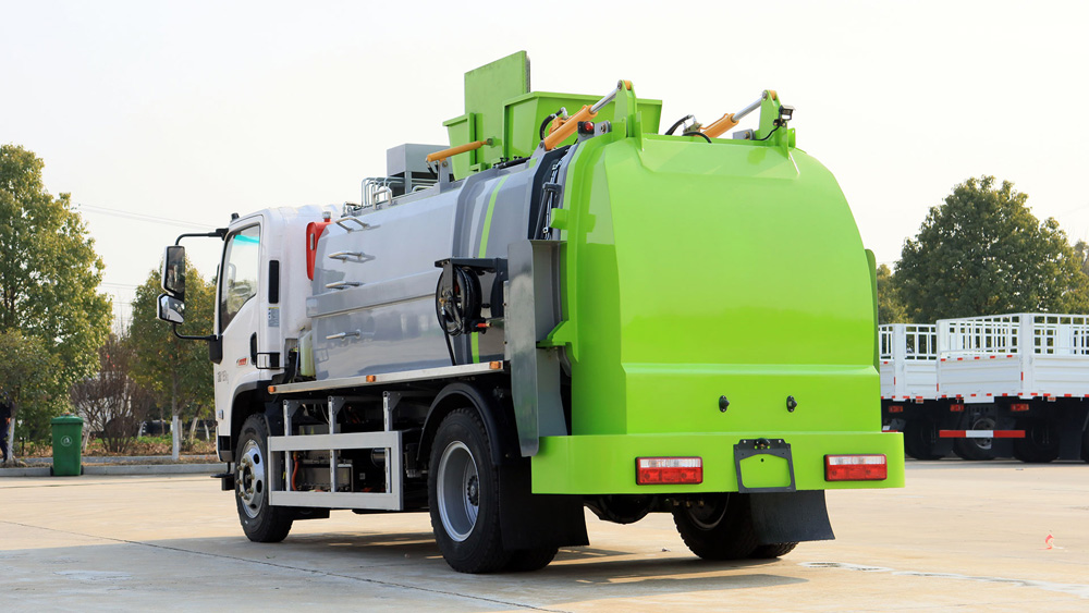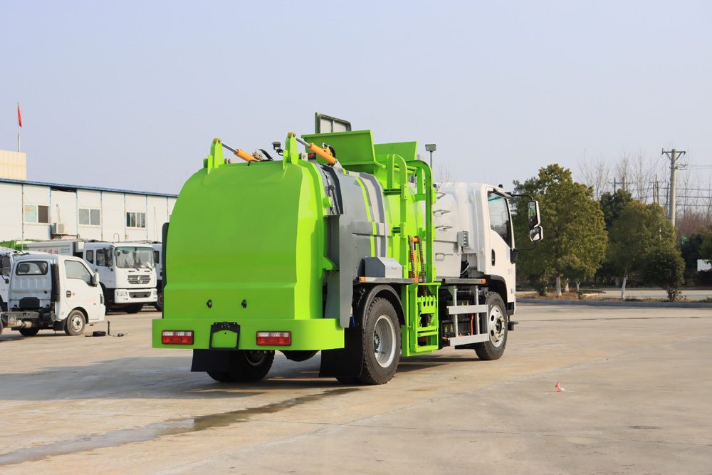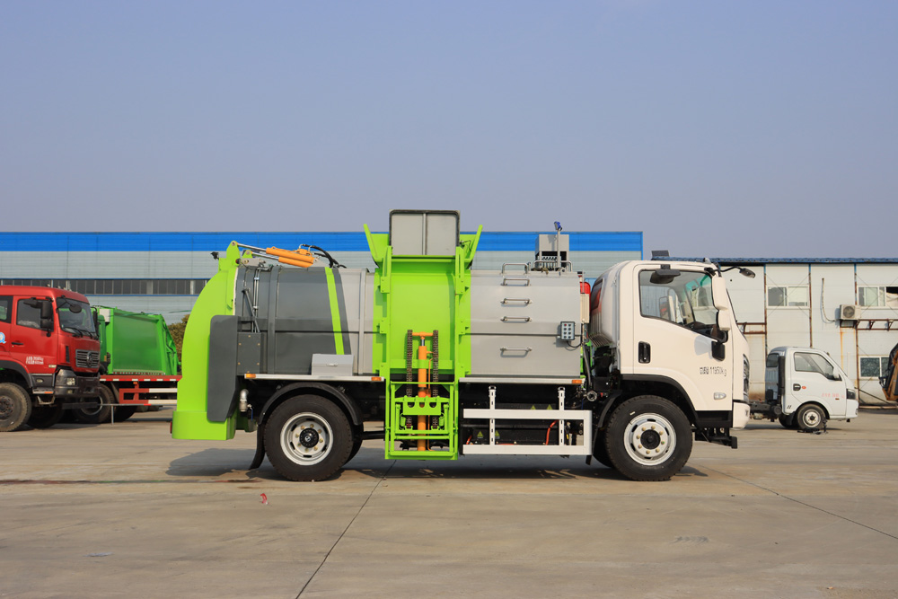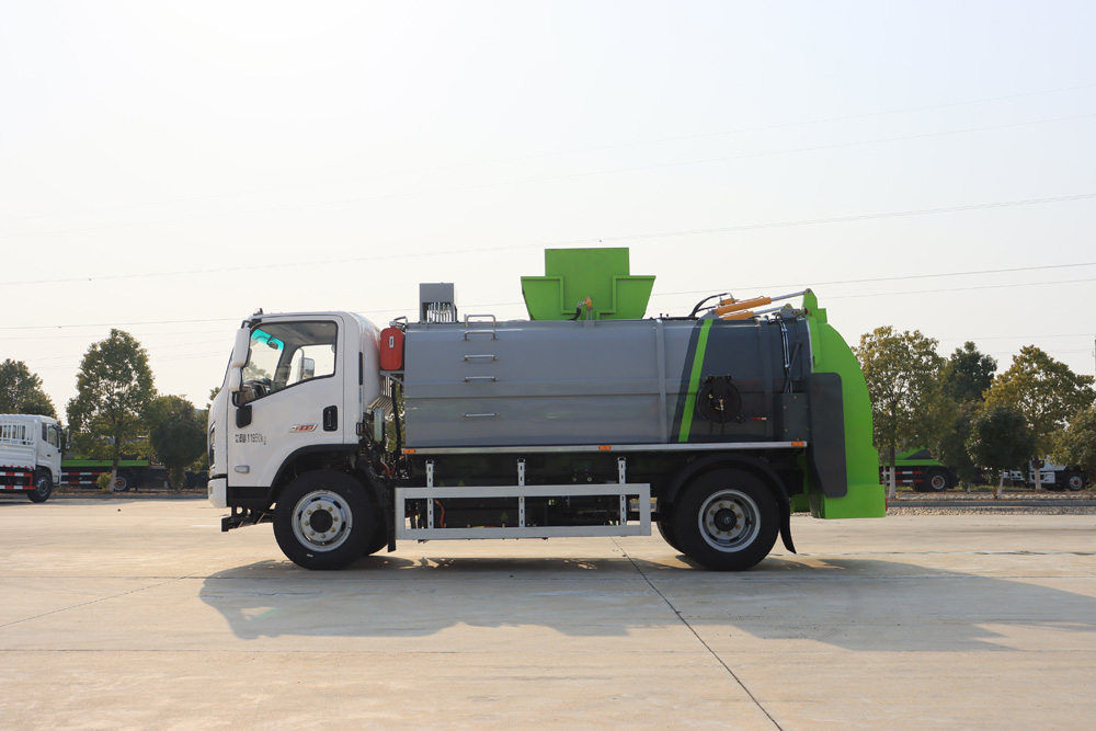 四、其他說明: 由于餐廚垃圾車上裝結(jié)構(gòu)復(fù)雜,自質(zhì)量較大,降低餐廚垃圾車自質(zhì)量,提高其載荷 利用率,將降低車輛運(yùn)營(yíng)成本。因此采用高強(qiáng)度材料,以降低上裝自質(zhì)量;擋泥板、裝飾件、蓋 板等輔助件采用密度較小的注塑件,采用集成化程度較高的零部件,以減少空間占用和自質(zhì)量, 同時(shí)有利于改善液壓系統(tǒng)的工作性能。專人試車;模擬各種復(fù)雜工作環(huán)境,所有壓縮發(fā)車前實(shí)物測(cè)試。