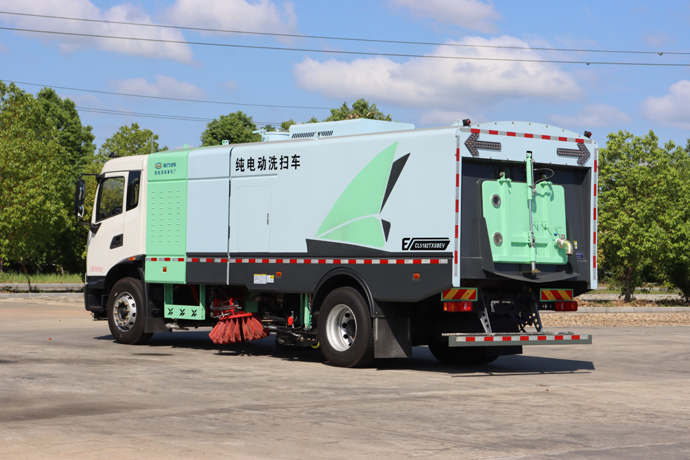 四、其他說明: 產品性能特點,方形箱體,大大增加箱體容積,增加整車美觀程度。 底盤電機直接取力,專車專配,完美匹配,無取力器,比柴油車更節省步驟、故障率更低。 洗掃車采用東風純電動二類汽車底盤改裝,加裝風機、高壓水泵、清水箱、垃圾箱、左右立掃、帶噴水桿的寬吸嘴、掃盤降塵系統、液壓系統、專用裝置電控系統和副車架等改裝而成。