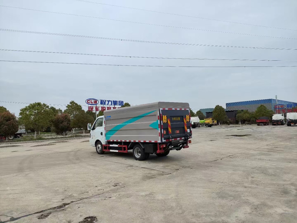 四、其他說明: 箱體采用開放式結(jié)構(gòu),可裝載12個240L 標(biāo)準垃圾桶,符合城市垃圾桶換桶的收集模式。 ? ? ?能夠確保垃圾不落地、同時防止拋灑滴漏等現(xiàn)象,有效解決垃圾運輸過程中的二次污染問題。箱體尾部安裝液壓尾板,配力威遠鑫500KG液壓尾板,具有升降功能,滿足桶裝作業(yè)要求;