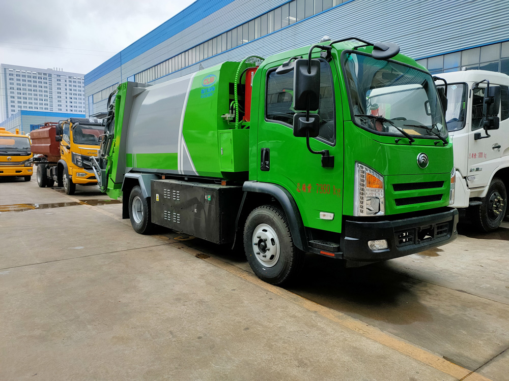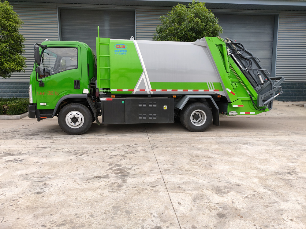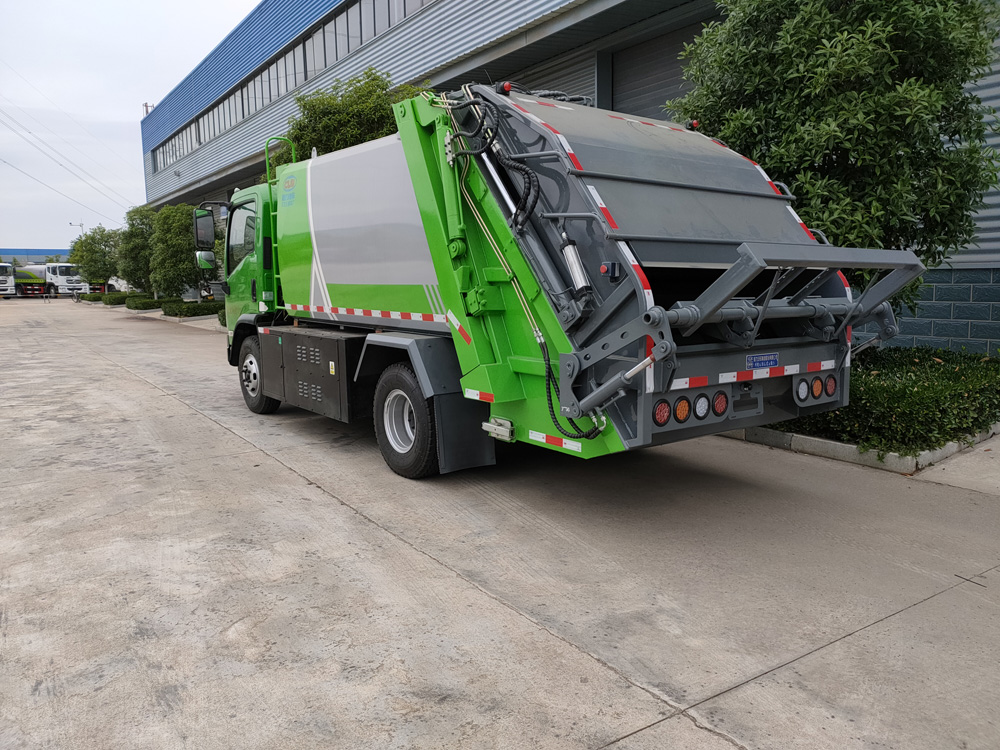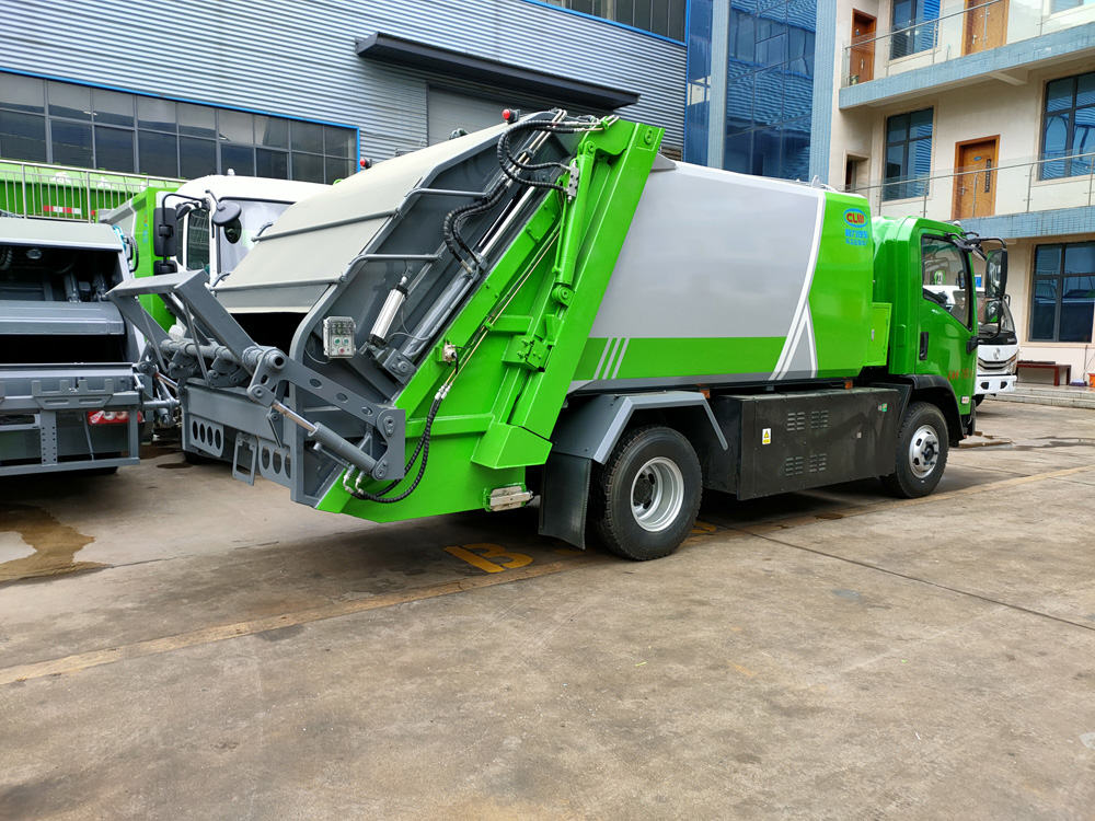 6. 方便的操作控制,作業(yè)控制盒分別安裝在駕駛室內(nèi)和車(chē)尾右側(cè),左側(cè)帶緊急停止按鈕,配備遙控器,駕駛室內(nèi)的作業(yè)控制盒可控制推擠卸料和選擇操作模式(如自動(dòng)或手動(dòng)),車(chē)尾的作業(yè)控制盒則控制壓填機(jī)構(gòu)和翻桶機(jī)構(gòu)的作業(yè),使用操作十分方便。特別是在垃圾填埋場(chǎng),作業(yè)人員無(wú)須下車(chē)即可完成卸料和污水排放。