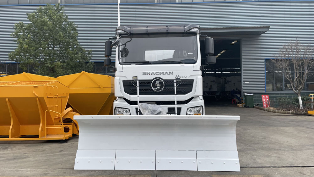 - 后置融雪撒布機:車輛尾部配備融雪撒布機,在冬季除雪過程中拋灑融雪劑,防止濕滑的路面結冰影響交通,覆蓋過融雪劑的路面能很好地解決路面結冰問題,使車輛安全通過,不受天氣影響 。