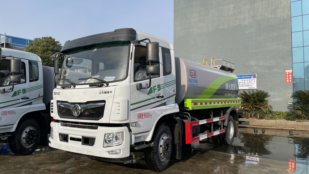三、選裝配置: 選配駕駛室內電控氣動操作;大鴨嘴前沖噴頭壹對;萬向前沖球閥;路面沖洗水管卷盤;本田高壓水泵,水槍可沖洗人行道、移動洗車等; 藥盤;長警燈,LED箭頭燈;罐側帶閘門,罐后加裝噴霧降塵裝置;灑水車泵標配程力泵選配杭州威龍泵;可對主管道加粗,可選316大口徑球閥;罐體內防腐、保溫、襯塑處理,灑水車作運水車用可加裝自流口。運熱水罐體可做保溫,運生活用水可做食品級304不銹鋼罐體。